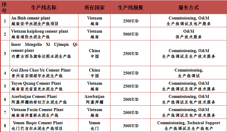 運城市昌潤水泥工程技術(shù)有限公司主要業(yè)績表